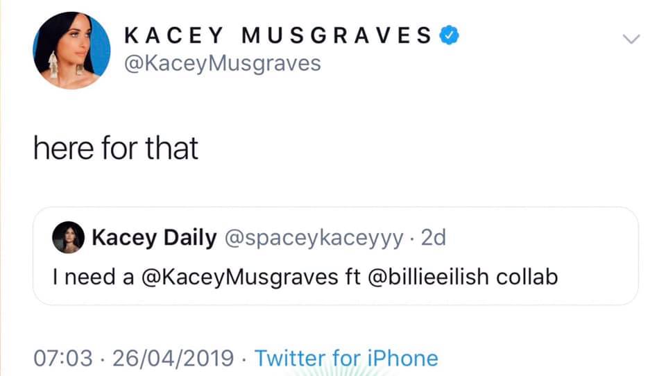 Kacey vừa chia sẻ trên Twitter rằng cô hy vọng được hợp tác với Billie.