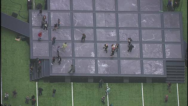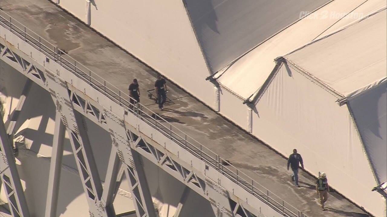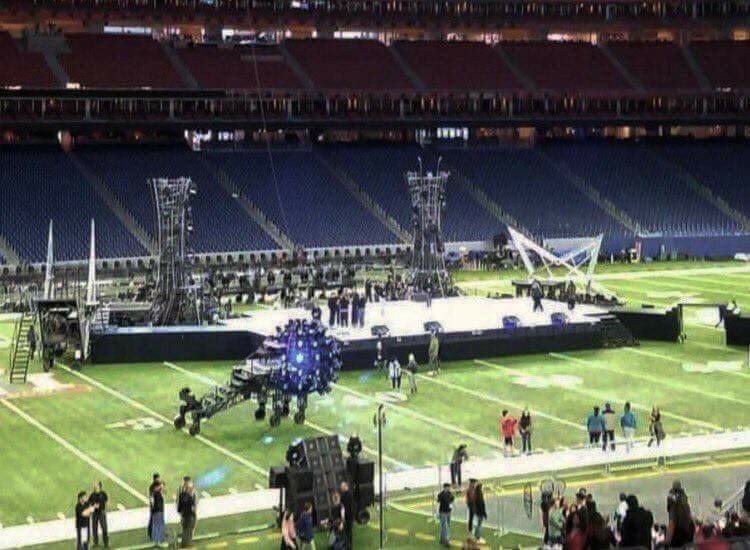 Trên nóc nhà của sân vận động NRG Stadium có vài người làm việc ngày hôm nay. Như vậy là thông tin nữ ca sĩ sẽ biểu diễn ở không gian này là có thật?