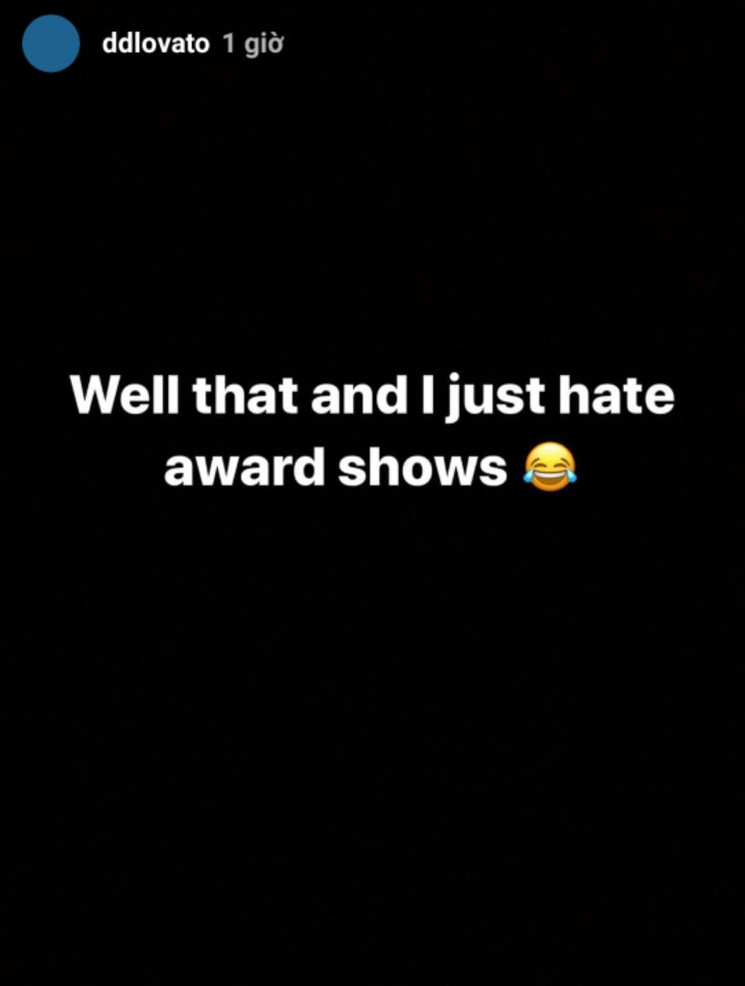 Cụ thể, thời điểm lễ trao giải VMAs đang diễn ra, Demi Lovato đã bất ngờ có một chia sẻ đầy ẩn ý trên story Instagram của mình: “Tôi đã bỏ qua MTV VMAS vì một lý do. Tốt thôi, vì tôi vốn ghét các chương trình trao giải”. Phát ngôn của Demi Lovato sau đó đã nhanh chóng nhận về nhiều ý kiến chỉ trích từ cộng đồng mạng, đa phần cho rằng nữ ca sĩ đang có thái độ khá cay cú và “sân si” vì mình không được bất kỳ đề cử nào tại MTV VMAs năm nay đồng thời phải “ngậm ngùi” chứng kiến sự tỏa sáng của Taylor Swift trên sân khấu.
