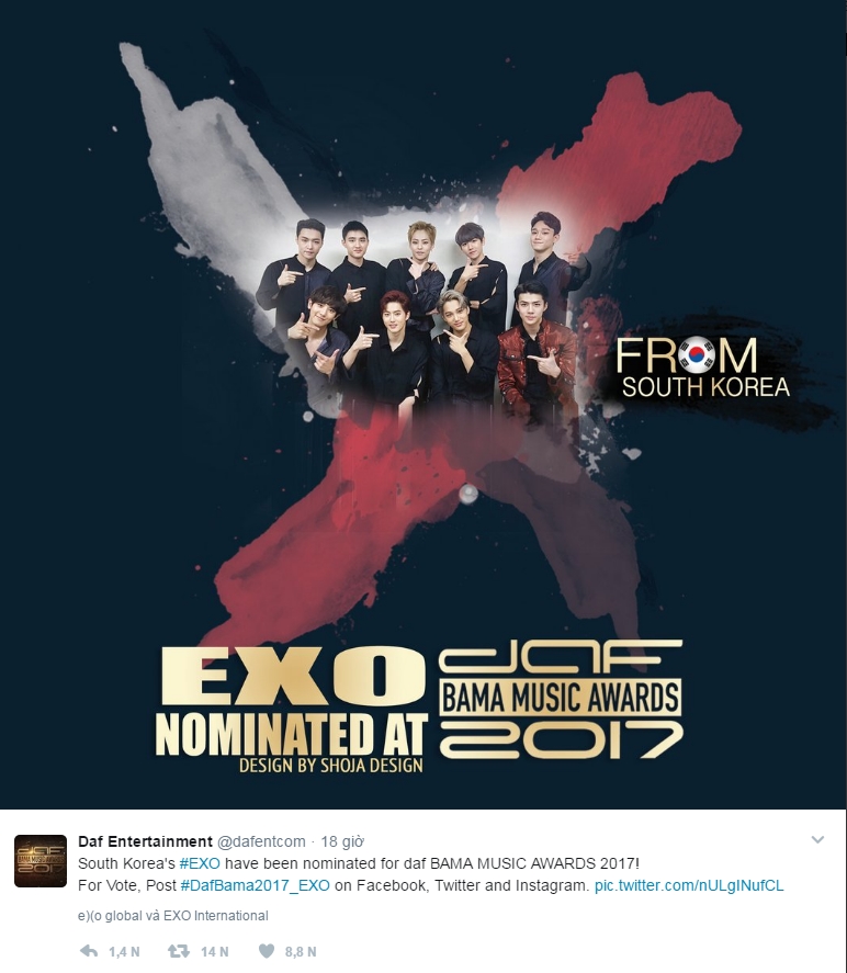 BAMA 2017 trở lại với động thái đầu tiên là chia sẻ hình ảnh các nghệ sĩ góp mặt trong đề cử năm nay. Việt Nam có Mỹ Tâm là nghệ sĩ đầu tiên được đăng tải hình ảnh trên trang chính thức của chương trình. Với US-UK và Kpop, các bạn sẽ gặp 1 số “người quen” như Zayn, SNSD hay EXO.