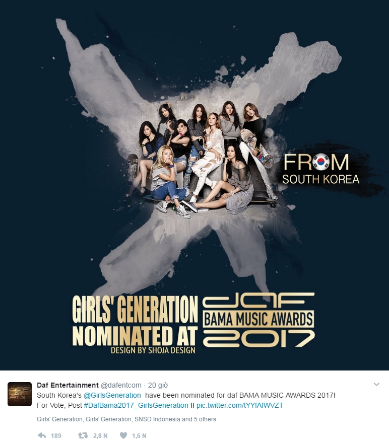 SNSD không thể nằm ngoài cuộc chiến “câu fan” của chương trình. Có điều là girlgroup nhà SM đã hoạt động với 8 thành viên gần 3 năm qua. Có vẻ như BAMA… chưa kịp cập nhật thông tin này rồi, bởi thế mới đăng hình 9 cô gái.