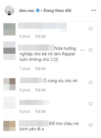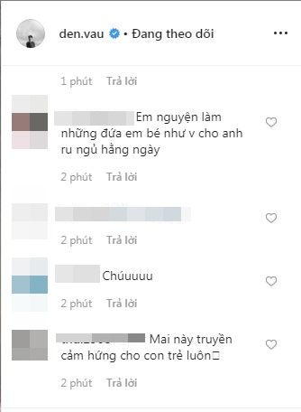 Dưới phần bình luận của đoạn clip, không ít khán giả đã bày tỏ sự thích thú của mình dành cho Đen Vâu. Ngoài những lời khen về sự mộc mạc, giản dị, bên cạnh đó không ít những “thuyết âm mưu” vô cùng thú vị được đặt ra như: “Mai này truyền cảm hứng cho con trẻ luôn”, “Em nguyện làm những đứa em bé như vậy cho anh ru ngủ hằng ngày”, “Đang tìm cảm xúc cho bài ráp về cha con”, “Cứ ru thế sau này lại có thêm 1 Đen Vâu cho đất nước“,…