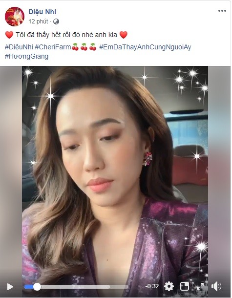Dòng trạng thái và đoạn clip được Diệu Nhi đăng tải trên trang cá nhân.