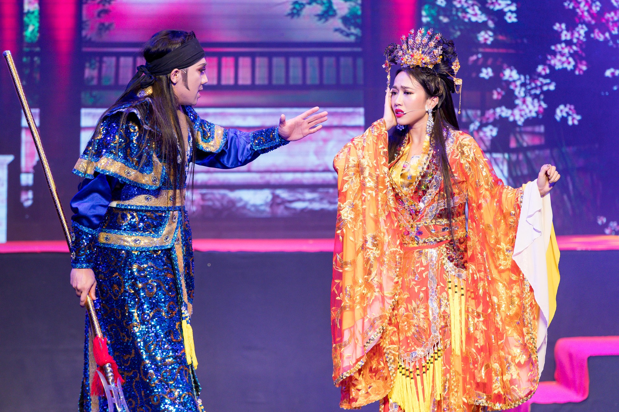Bạn có thể biết đến khả năng “phá hit” bằng giọng ca thần thánh của Diệu Nhi nhưng đó là với những ca khúc nhạc trẻ. Còn khi Diệu Nhi xâm lấn mặt trận cải lương thì chưa biết hay hay dở nhưng đến cả Trấn Thành sau khi nghe xong cũng phải xỉu lên xỉu xuống là hiểu. Bằng chứng là trên story Instagram, Diệu Nhi vừa đăng tải lại một vài đoạn clip ngắn trích trong liveshow của cô năm xưa, trong đó có một vở kịch cổ trang có sự tham gia diễn xuất của ông xã Hari Won. Trấn Thành vào vai Lữ Bố còn Diệu Nhi là Điêu Thuyền, vở kịch mang tựa đề Ước mơ vươn đến một ngôi sao.