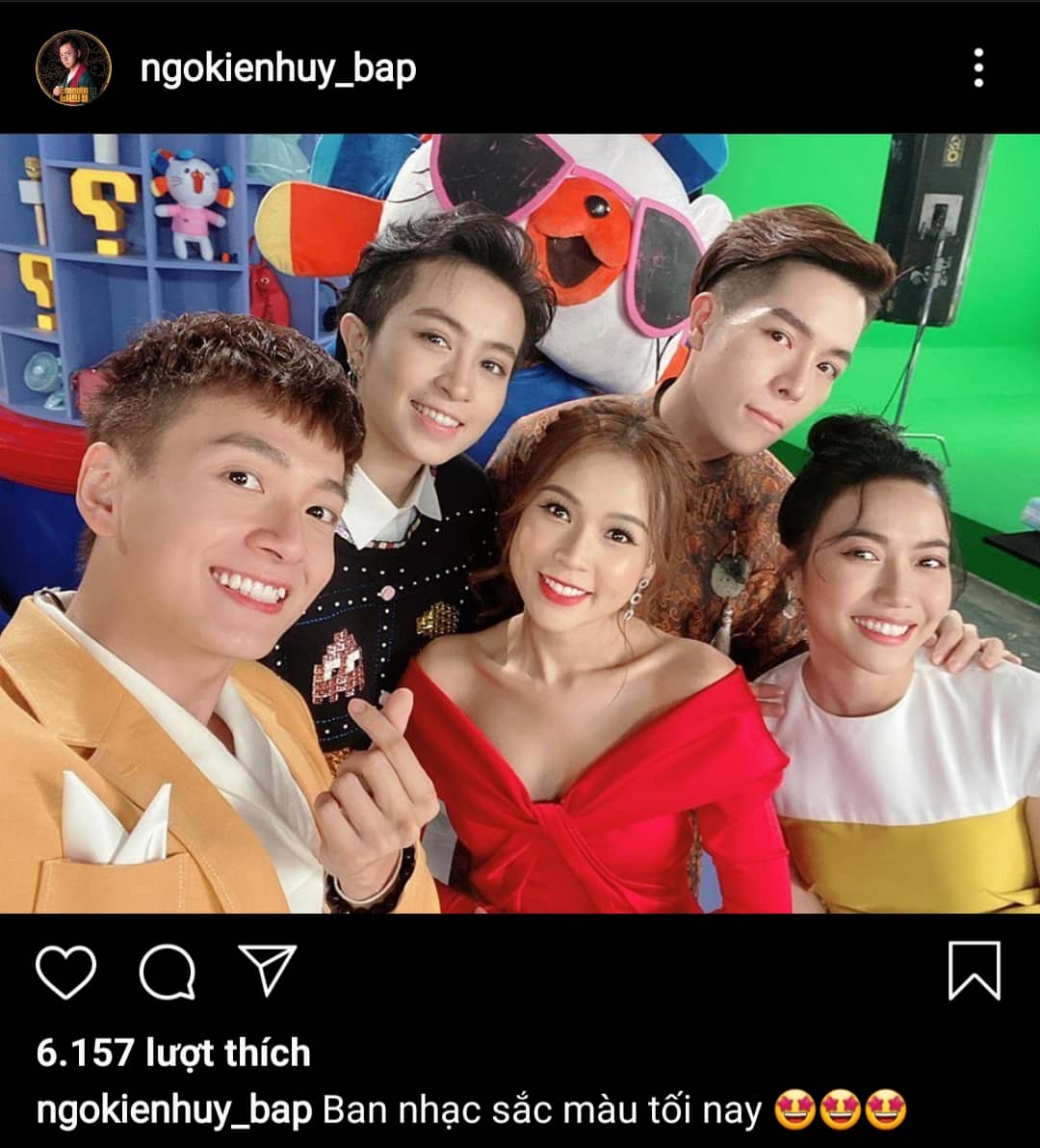 Mới đây, Ngô Kiến Huy đã khiến cho khán giả và cộng đồng người hâm mộ của mình rần rần bàn tán trước việc thả thính về một nhóm nhạc trong mơ quy tụ những gương mặt đang được yêu thích của làng giải trí. Cụ thể, nam ca sĩ đã chia sẻ trên trang Instagram cá nhân của mình bức ảnh chụp cùng với Diệu Nhi, Gil Lê, Đức Phúc và Sam, đi kèm với đó là dòng caption: “Ban nhạc sắc màu chuẩn bị lên sóng tối nay“.
