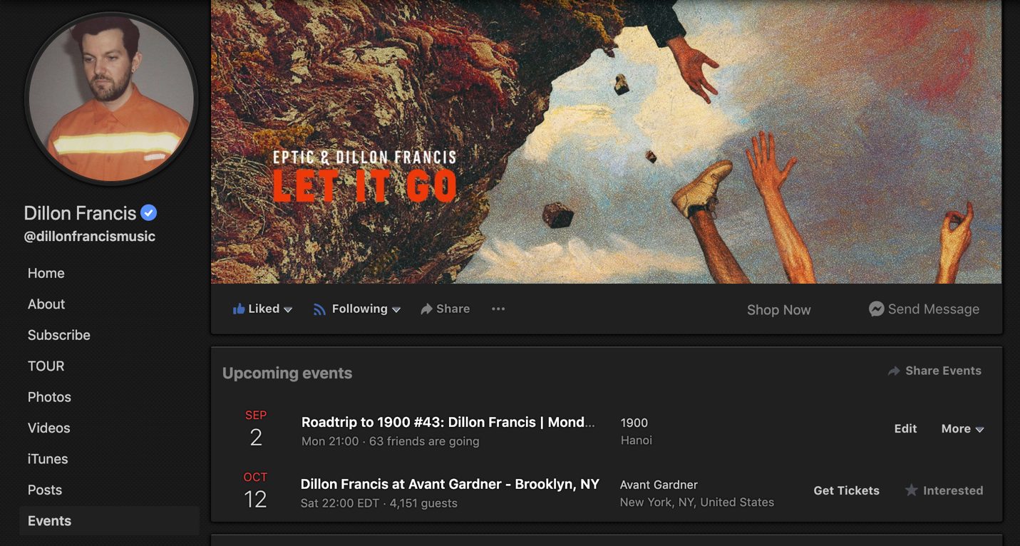 Không chỉ là chủ nhân của các bản hit “không ai không biết” nhận được hàng trăm triệu lượt nghe như “Get Low” ft. DJ SNAKE với gần 600 triệu view, “Bun Up the Dance” ft. Skrillex, “Set Me Free” ft. Martin Garrix, “Coming Over” ft. Kygo,… Dillon Francis còn luôn là headliner của các đại nhạc hội hoành tráng nhất thế giới: Hard Fest, Ultra Music Festival, Coachella.