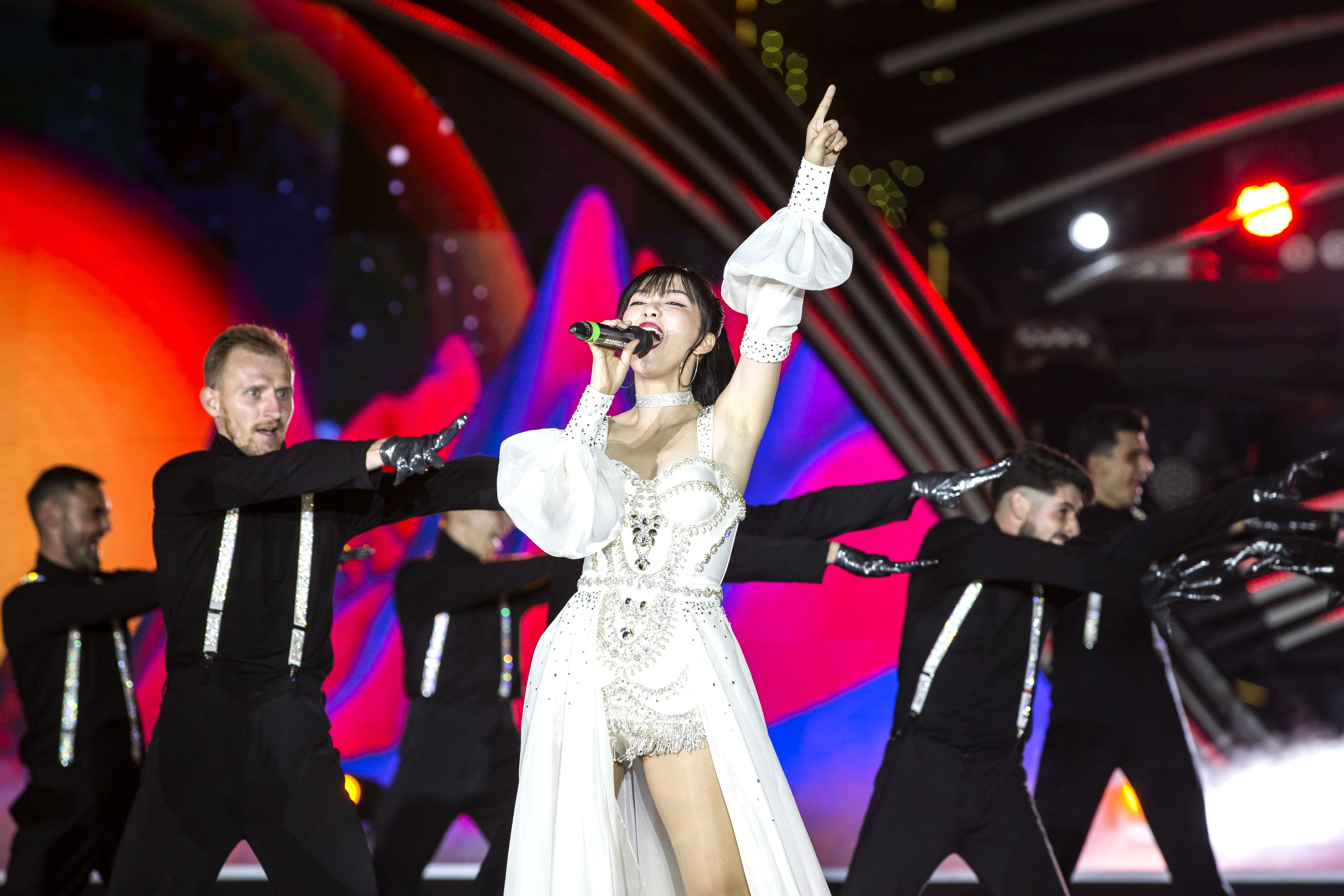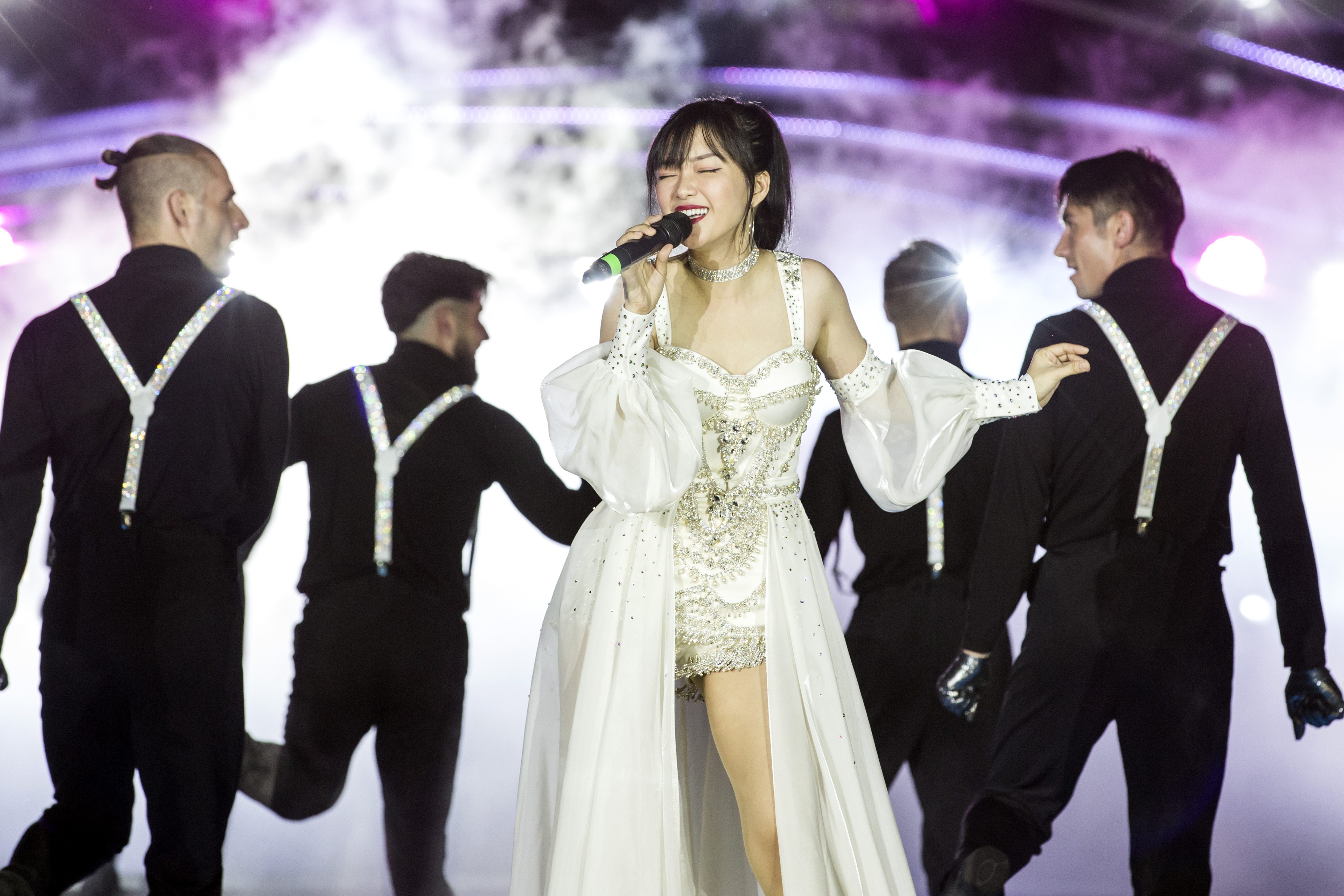 Xuất hiện trong sự kiện lần này, nữ ca sĩ Đinh Hương gây chú ý với bộ đầm trắng vừa mạnh mẽ lại không kém phần gợi cảm khiến fan không thể rời mắt. Cộng với đó là dàn dancer 100% đến từ nước ngoài, với số lượng “hùng hậu” trong những bộ trang phục đen tạo cảm giác tương phản, vô cùng bắt mắt.