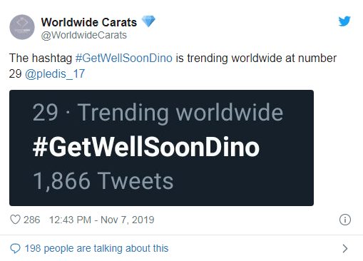Các fan hâm mộ của SEVENTEEN đang đẩy hashtag #GetWellSoonDino với hy vọng tình trạng sức khỏe của anh chàng sẽ sớm cải thiện. CARATs hy vọng em út của nhóm sẽ tập trung nghỉ ngơi và mau chóng hồi phục sức khỏe.
