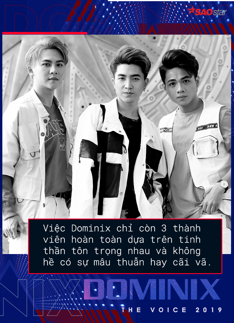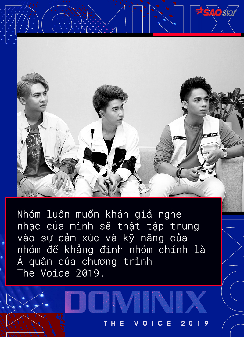 - Xin chào độc giả của Saostar, kể từ thời điểm kết thúc cuộc thi The Voice 2019, nếu nói về sự thay đổi thì Dominix lại có nhiều thời gian để dành cho nhóm. Hàng ngày sẽ gặp nhau để tập luyện cũng như trao đổi những kế hoạch và dự án của nhóm. Tuy nhiên, vì giờ nhóm đang tự quản lý nhau (cười) nên cũng có những sự xáo trộn nhất định.