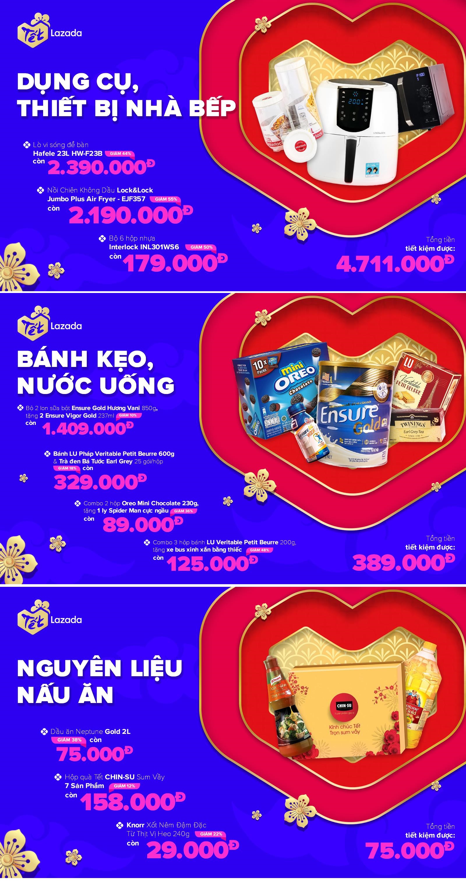 - Tải ứng dụng Lazada (có rất nhiều ưu đãi chỉ áp dụng trên ứng dụng Lazada)Truy cập vào trang khuyến mãi Tết của LazadaThu thập các mã giảm giá của Lazada, của nhà bán hàng và các đối tác thanh toánThêm các sản phẩm yêu thích vào giỏ hàngThanh toán từ ngày 3/1-12/1 để nhận được mức giá ưu đãi tốt nhất