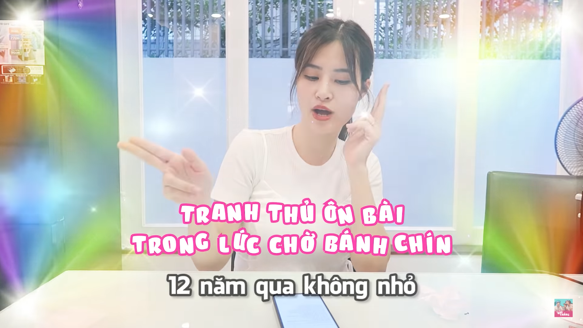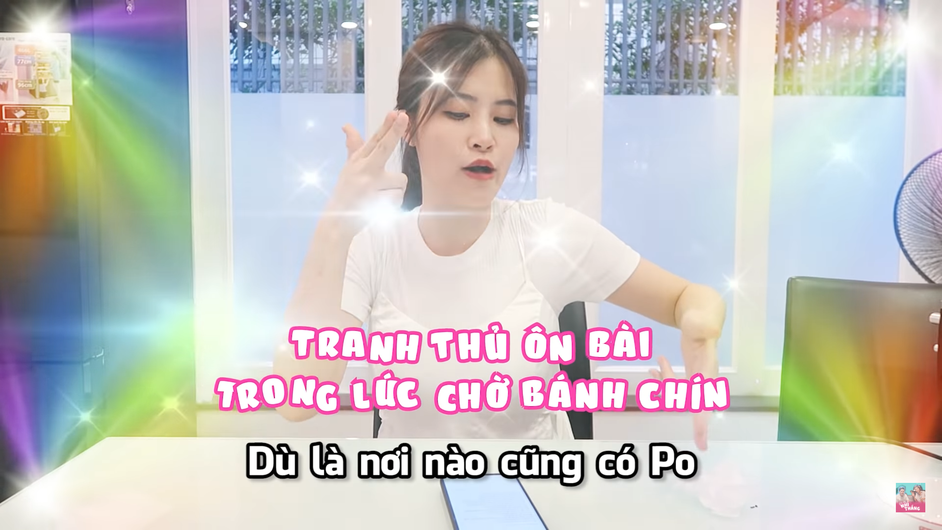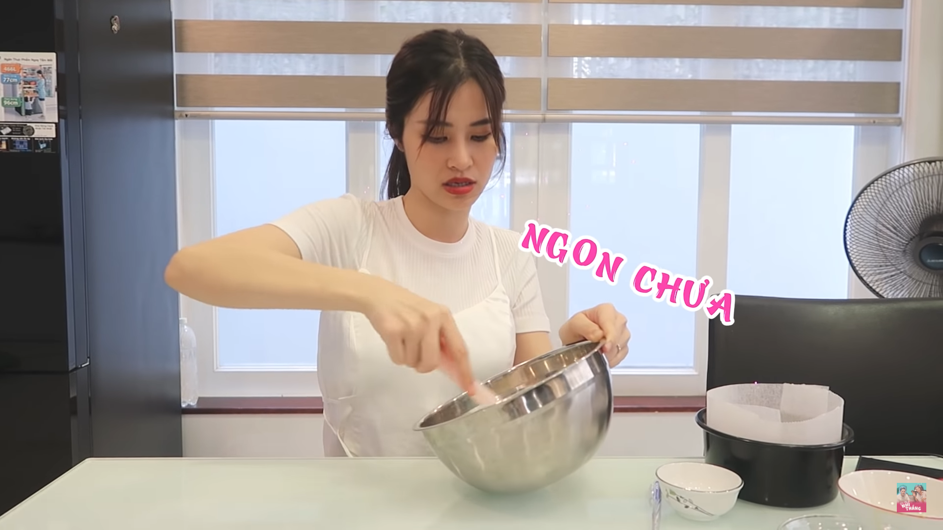Không những vậy, do thời gian gấp rút nên Đông Nhi cũng tranh thủ luôn thời gian làm bánh để tập rap tặng FC. Dù phải “lính qua lính quýnh” vì các công đoạn làm bánh, nhưng cô nàng vẫn tỏ ra rất háo hức khi vừa học lời vừa bắn đoạn rap do Tùng Maru viết.