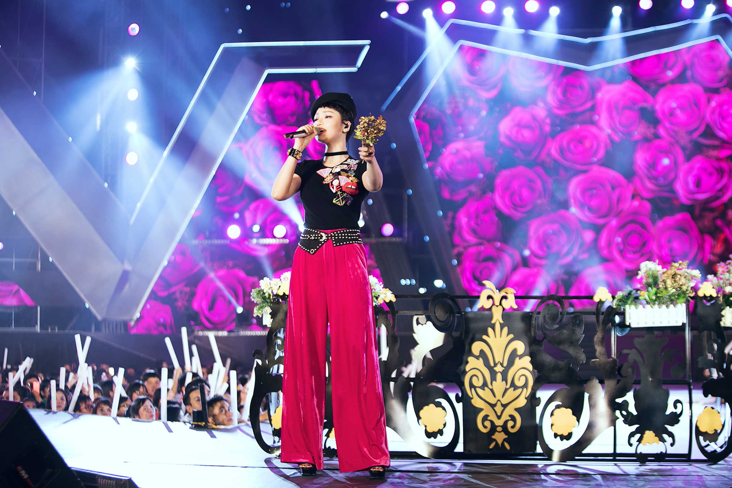 Nữ HLV rạng rỡ trên sân khấu trước 30.000 khán giả.