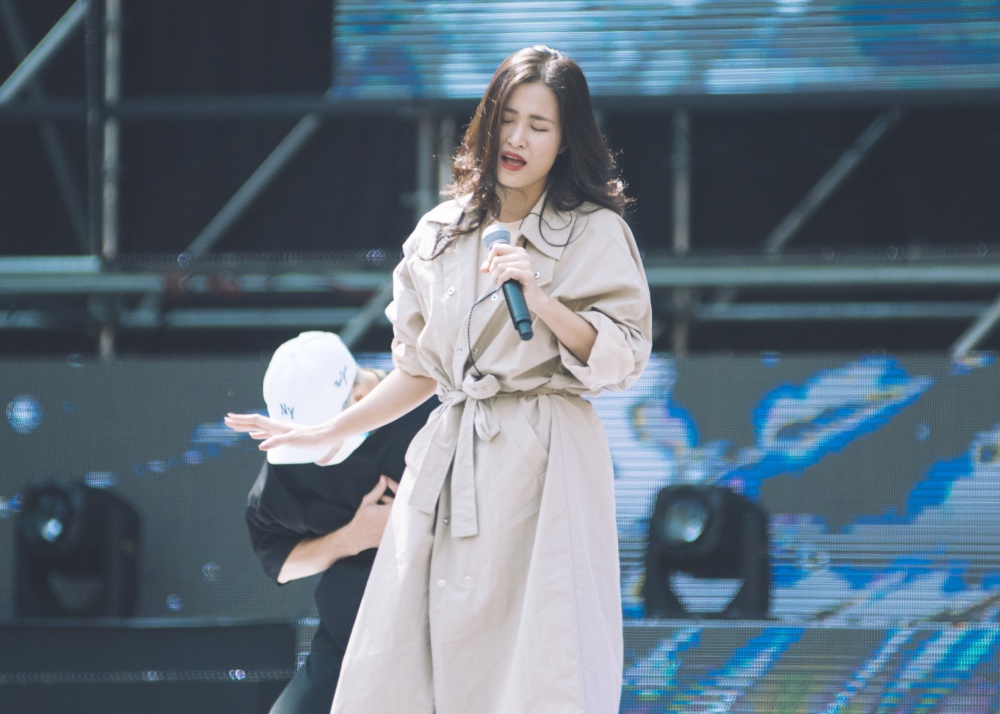 Nữ ca sĩ make up nhẹ nhưng vẫn rạng rỡ.
