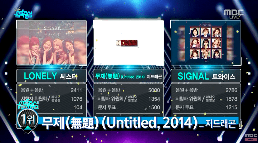 Kết quả chương trình Music Core tháng 6, Untitled, 2014 đã bỏ xa hai vị trí đằng sau lần lượt là Signal - TWICE và Lonely - SISTAR.