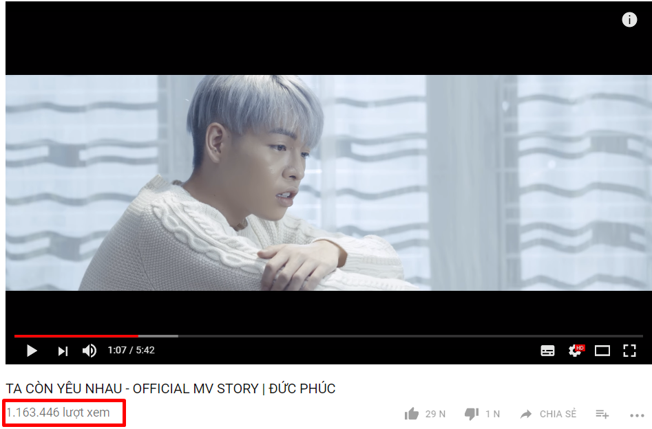 MV tái xuất hậu “dao kéo” của Đức Phúc nhanh chóng cán mốc triệu view.