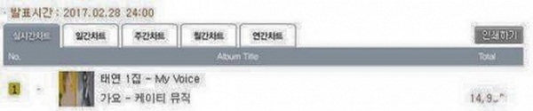 Ngày 28/2, Taeyeon đã chính thức phát hành full album đầu tay tựa đề My Voice. Ra mắt cùng thời điểm là ca khúc chủ đề Fine - Một bản ballad gây xao xuyến. Đúng như dự đoán, ngay sau khi ra mắt sản phẩm từ thủ lĩnh SNSD đã vượt mặt nhiều tên tuổi lớn để phủ sóng loạt BXH âm nhạc châu Á cũng như toàn cầu. Thành công này không chỉ nhờ kế hoạch phát hành của SM mà còn đến từ loạt chiến dịch mua album ấn tượng từ các fansite của Taeyeon.