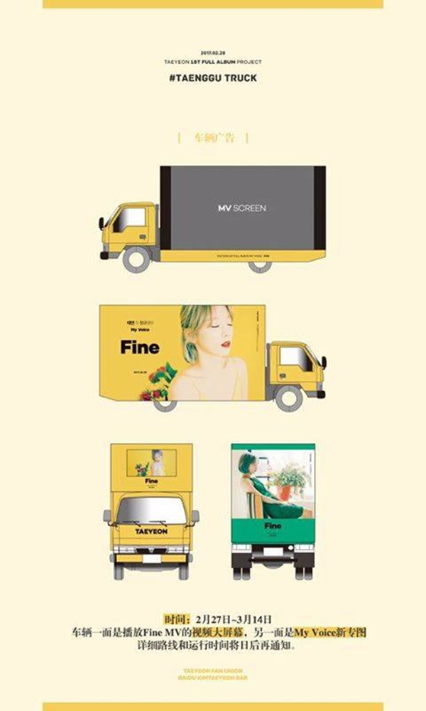 1 trong những chiến dịch quảng bá chạy xe khắp seoul để giới thiệu album của Taeyeon do các fan thực hiện.
