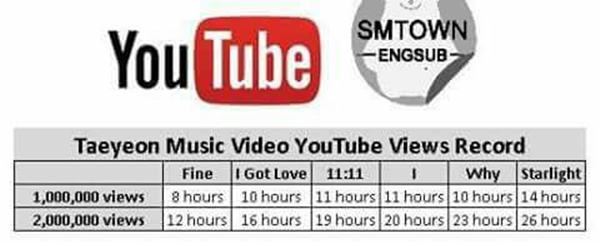 Thêm một ghi nhận về số liệu thời gian Taeyeon cần để MV “chạm mốc” 2 triệu lượt xem trong những năm qua. Các con số này cho thấy sức hút từ cô nàng thủ lĩnh SNSD chưa hề hạ nhiệt.