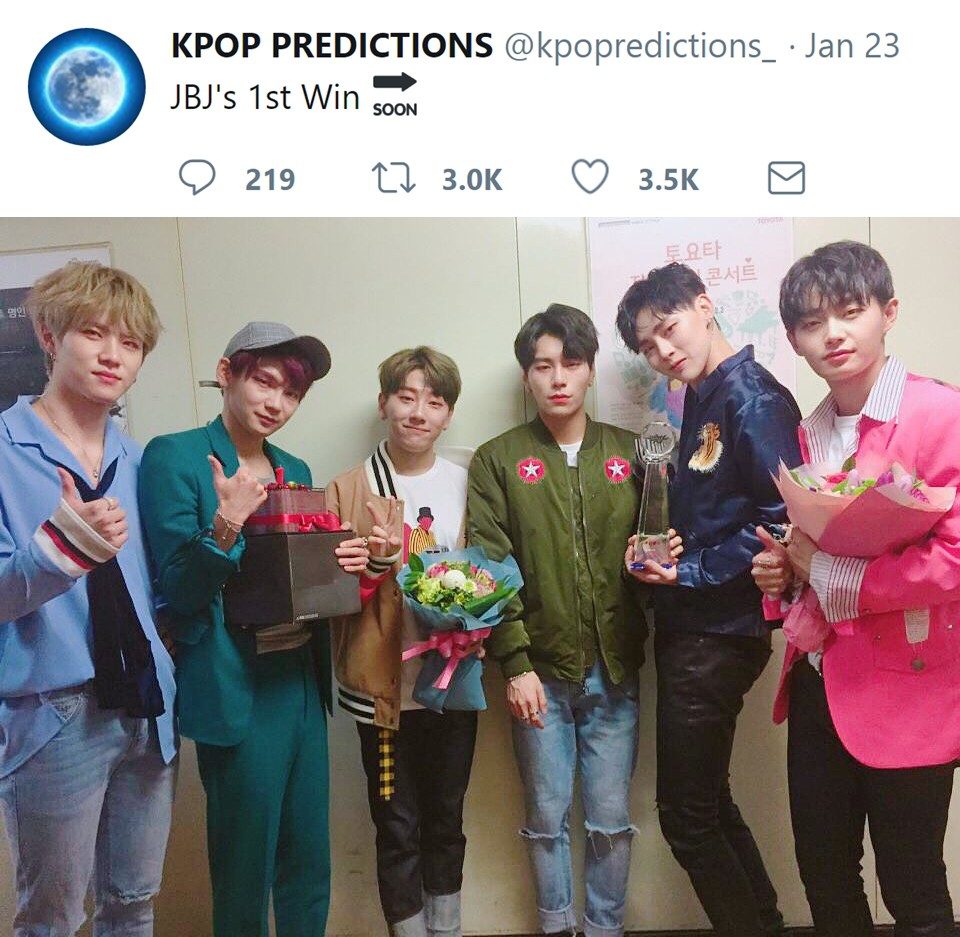 Tương tự như Oh My Girl, JBJ cũng có chiếc cúp đầu trong sự nghiệp. Điều đặc biệt là chiến thắng này đã được tài khoản @kpopredictions_ dự đoán trước 3 ngày.