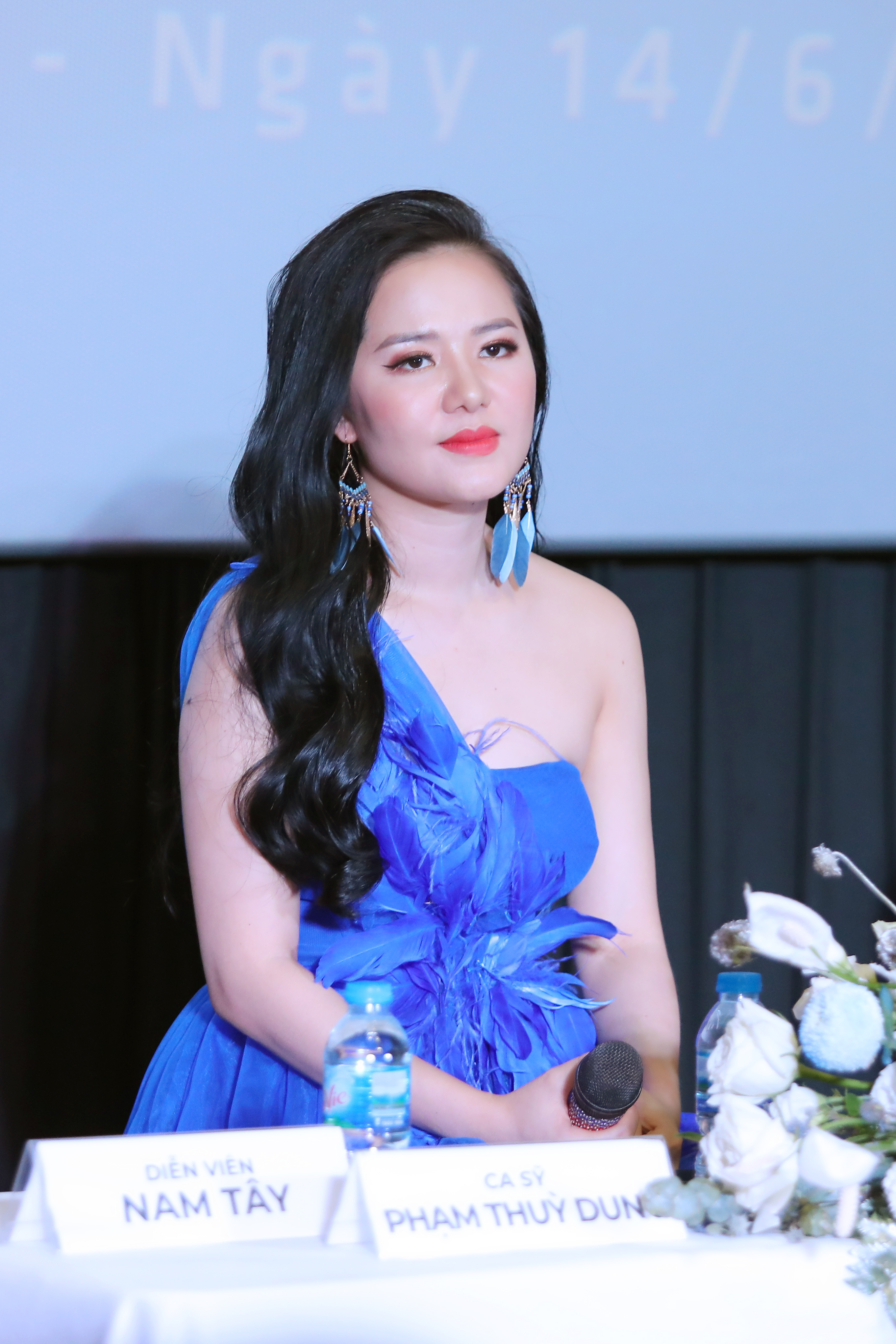 Phạm Thùy Dung trong buổi họp báo ra mắt sản phẩm âm nhạc đầu tiên sau 6 năm bước lên ngôi vị Á quân Sao mai 2013.