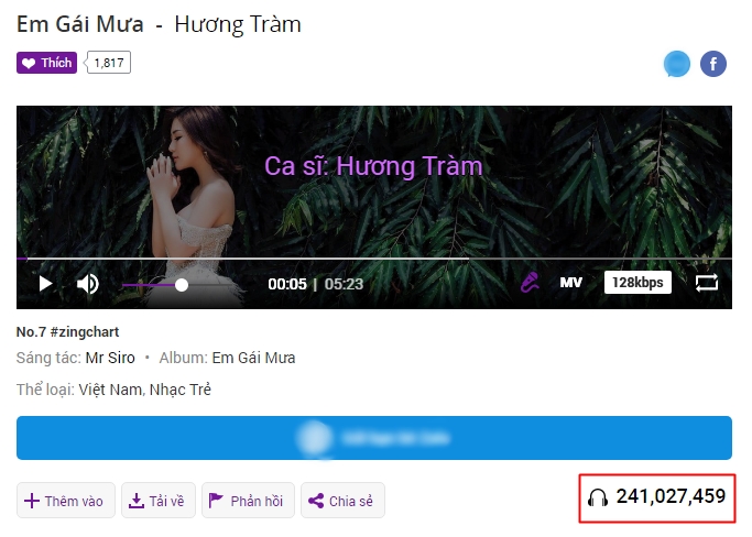 Em gái mưa hiện đạt hơn 241.000.000 lượt nghe.