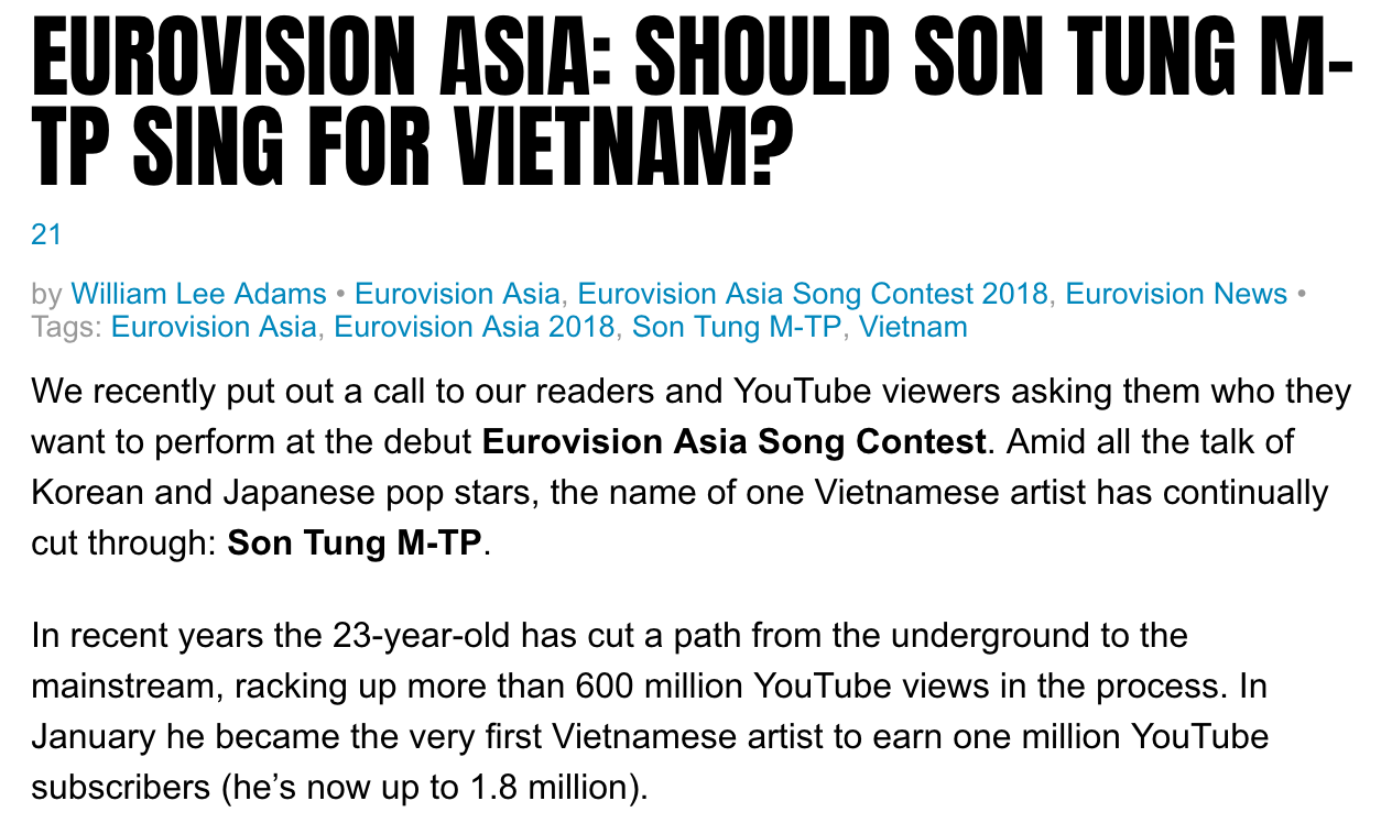 Tiêu đề bài viết: “Sơn Tùng có nên là đại diện cho Việt Nam?”