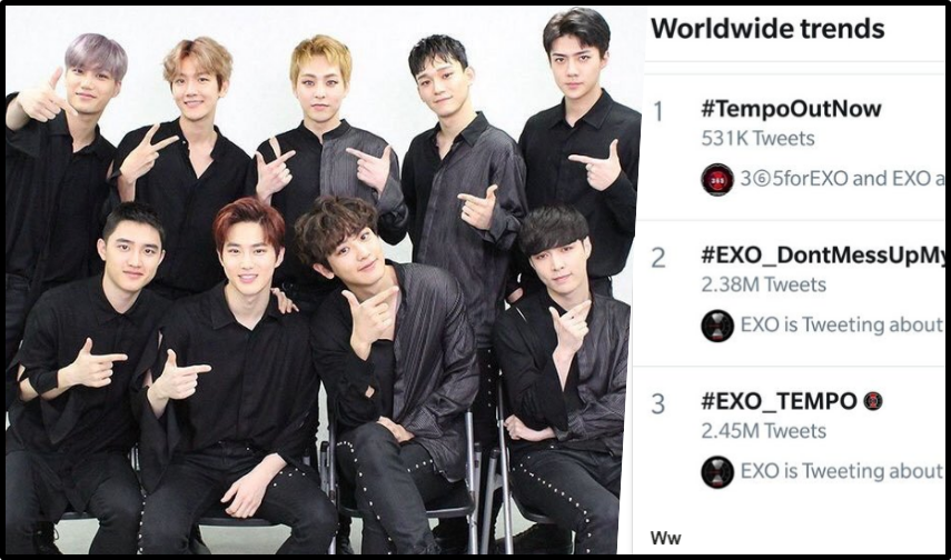 Từ khóa về EXO, Tempo và Don't Mess Up My Tempo lần lượt nắm giữ vị trí đầu trending thế giới.