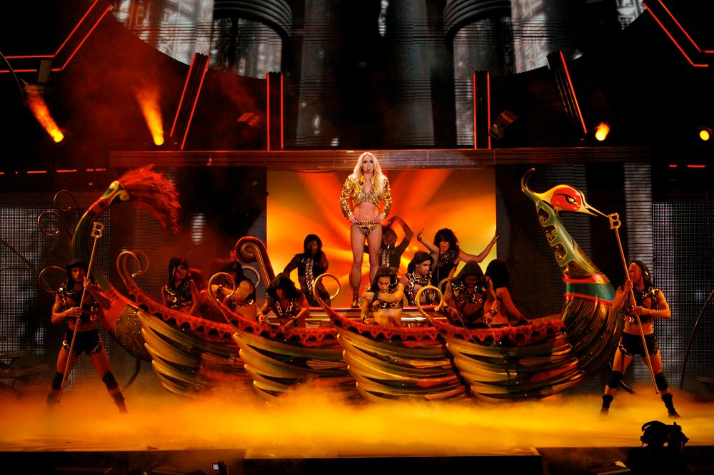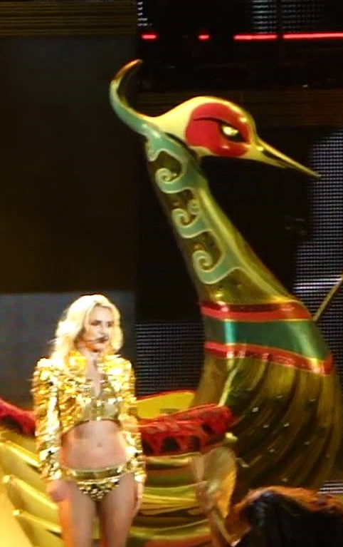 Bạn thấy gì? Một sân khấu hoành tráng với concept Ai Cập cổ đại, trong đó Britney Spears hóa thân thành Nữ hoàng Cleopatra đầy khêu gợi, xuất hiện trên một chiếc thuyền khổng lồ có đầu chim phượng hoàng. Sân khấu sang chảnh và cầu kì bạn vừa xem trên ảnh là màn biểu diễn ca khúc Gimme More nằm trong khuôn khổ Femme Fatale Tour, Tour lưu diễn của Britney được tổ chức vào năm 2011 nhằm quảng bá cho album phòng thu Femme Fatale khá thành công vào thời điểm ra mắt.