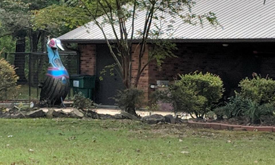 Hết hồn chưa? Từ một đạo cụ trang trí sân khấu mĩ miều, chiếc đầu chim phượng hoàng đã yên vị tại sân vườn nhà của ông Jamie Spears, cha của nàng Công chúa nhạc Pop, trở thành một vật trang trí oách không thể tả. Đố có cửa hàng bán đồ trang trí vườn nào chế tác được một cái đầu chim phượng hoàng hoành tráng đến vậy đấy. Có vẻ như thời gian trên 7 năm cũng đã làm cho lớp sơn phai đi ít nhiều. Chắc ông Jamie cũng rất vui vẻ với món quà “khủng” đến vậy từ cô con gái tài năng…