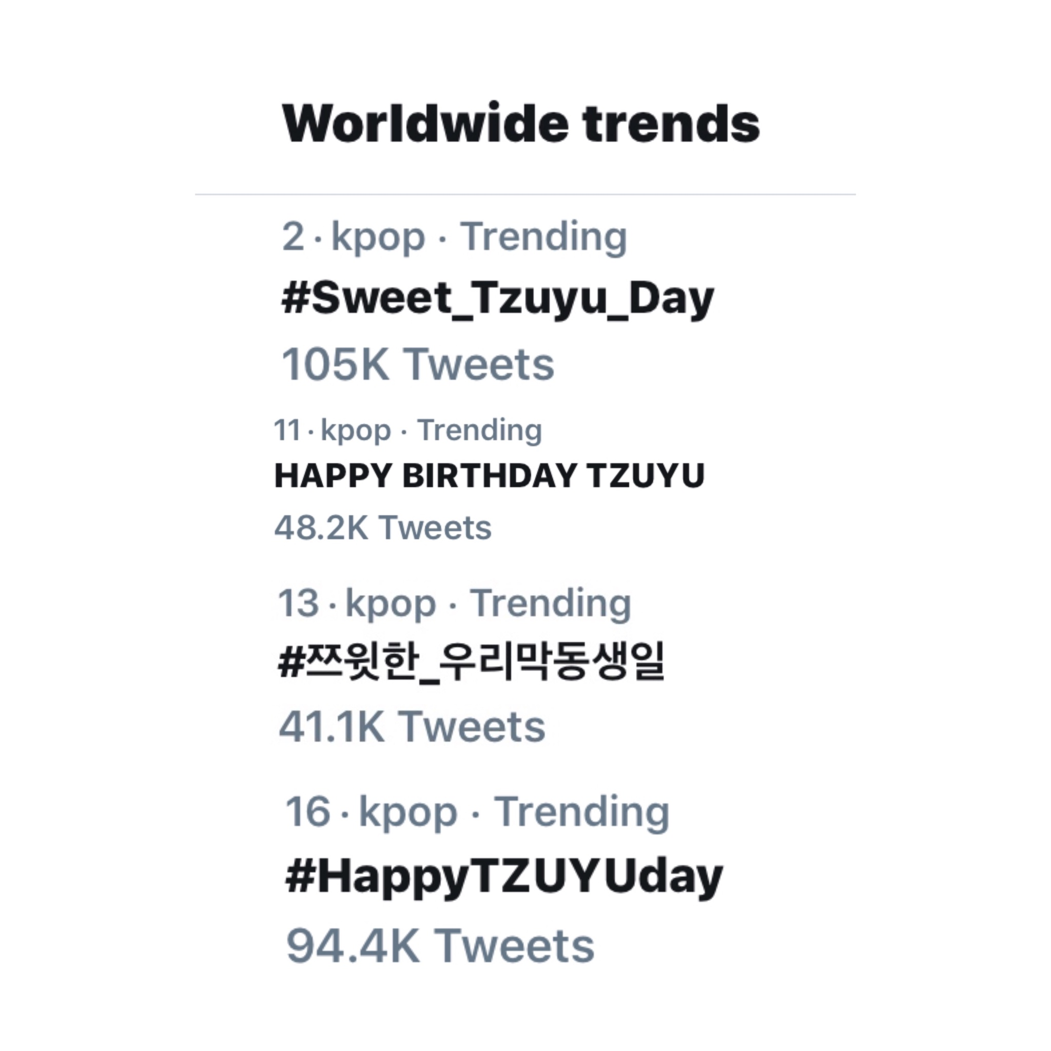 Những chiếc hashtag lọt top trending mừng sinh nhật Tzuyu.
