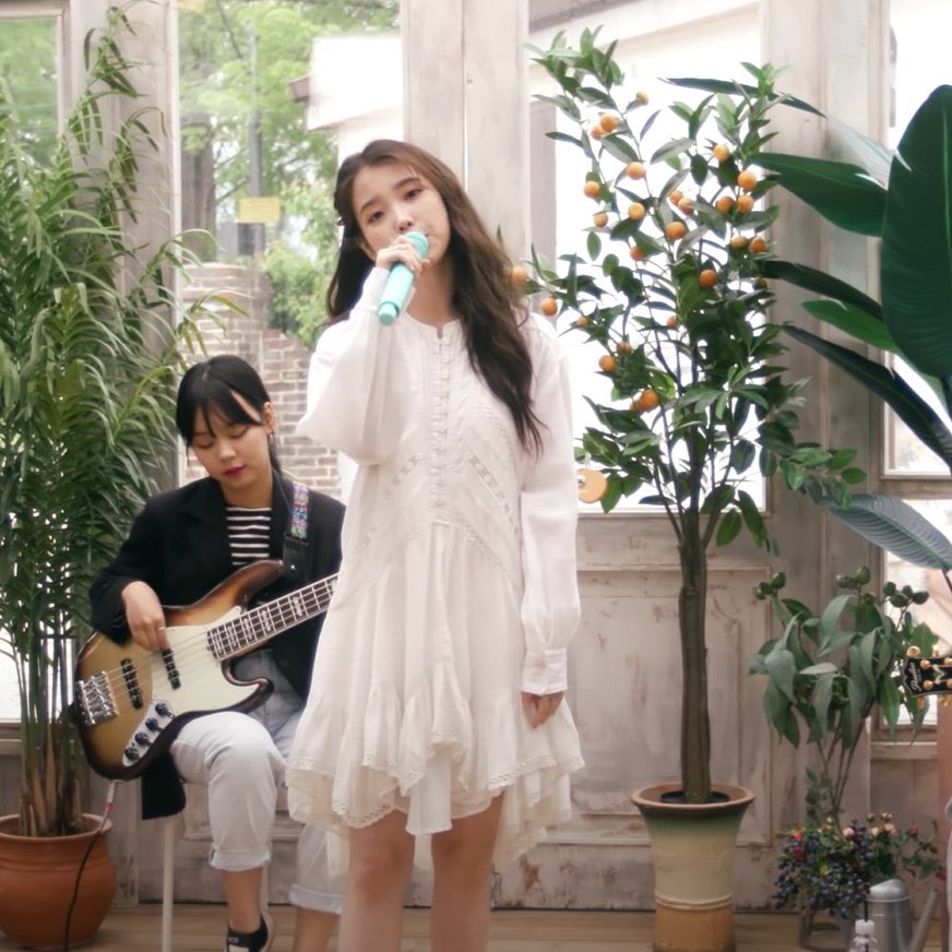 Giống với chiếc váy mà IU đã mặc trong đoạn video hát live ca khúc Eight gần đây.