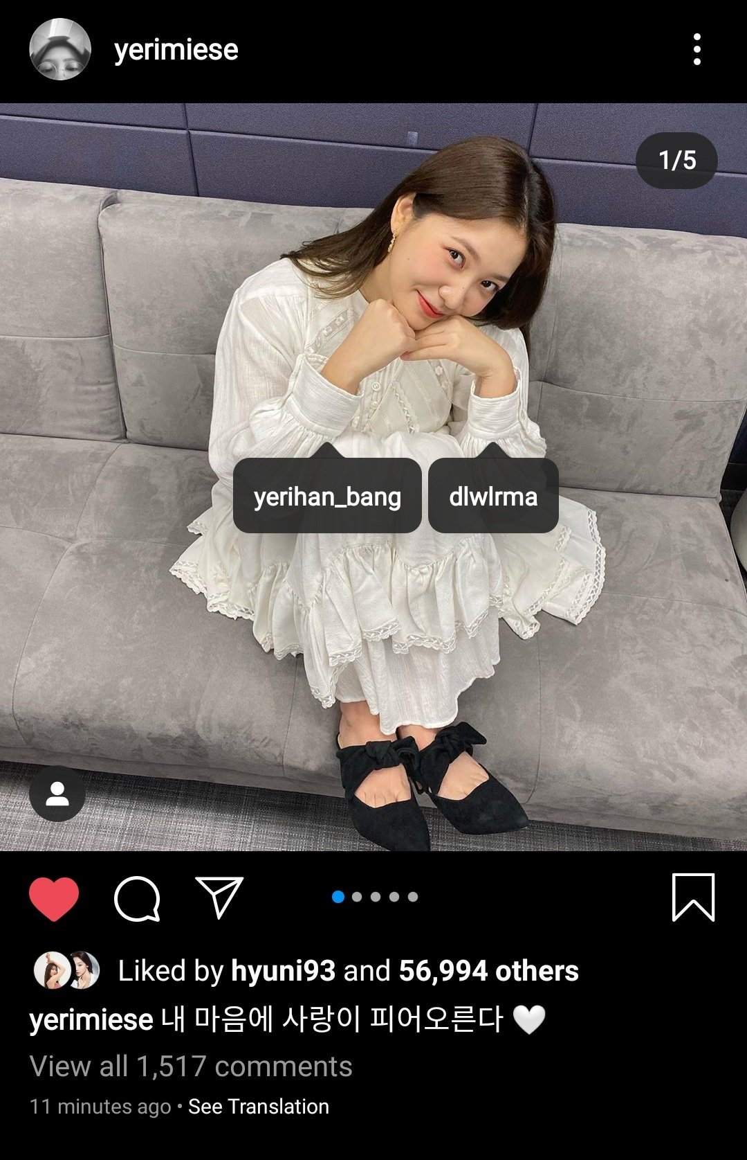Bài đăng mới của Yeri tag tài khoản chương trình và tài khoản của IU.