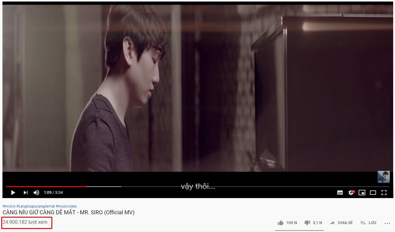 Sau 1 năm lên sóng, MV đang nắm giữ gần 25 triệu lượt xem trên Youtube.