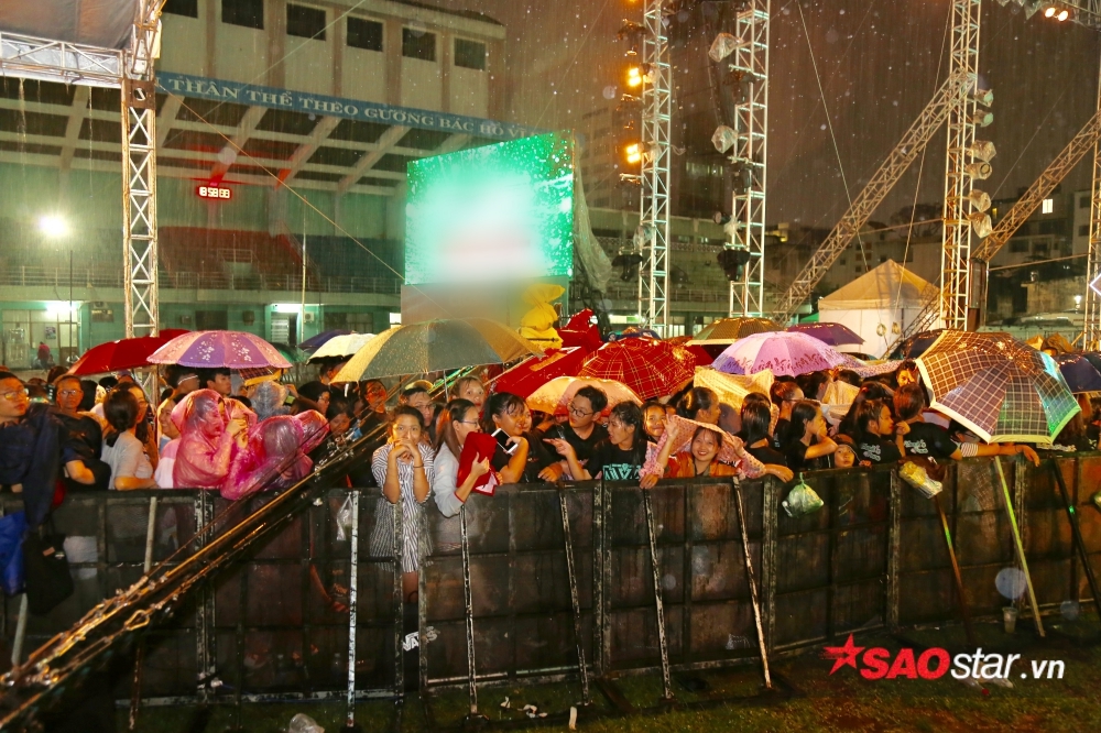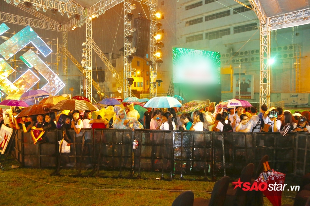 Các fan đội mưa từ rất sớm để có được vị trí tốt gần sân khấu.