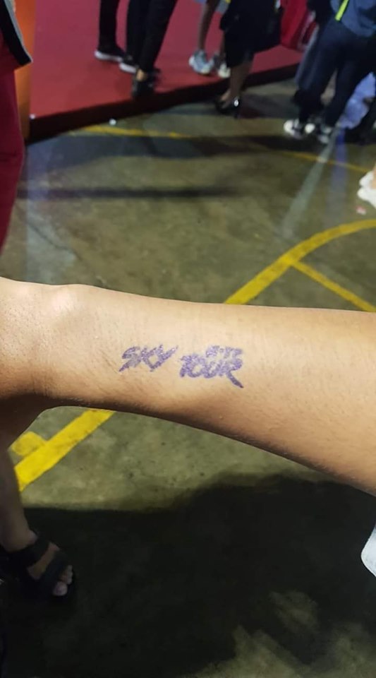 Khi đi qua cổng kiểm soát, người tham dự phải đi qua bộ phận an ninh để dán tem và đóng dấu mực in có in dòng chữ “Sky Tour M-TP” mới đủ “quy trình” để được vào bên trong. Tuy nhiên, khi đến lượt vị khán giả này thì mực in con dấu chỉ vỏn vẹn chữ “Sky”. Dù đã yêu cầu được đóng dấu lại nhưng nhân viên này cho rằng như vậy là được rồi và còn khẳng định, BTC chỉ kiểm tra tem trên vé có chống giả hay không.