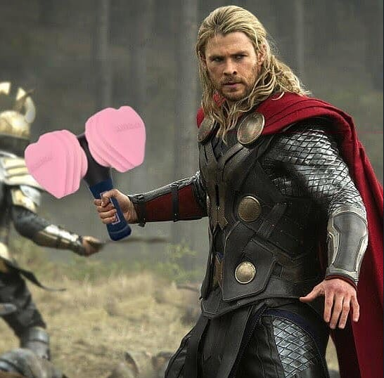Cầm lightstick của BlackPink thay búa thần thế này, Thor có thể gọi được sấm sét?