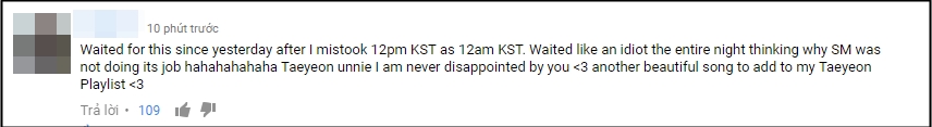Cách đây ít phút, SM vừa chính thức ra mắt MV Make Me Love You - Ca khúc chủ đề repackage (đĩa tái bản) full album đầu tay của Taeyeon. Ngay lập tức, sản phẩm trở lại này đã thu hút sự chú ý mạnh mẽ. Bên cạnh bày tỏ cảm xúc dành cho 1 MV “mãn nhãn” thì không ít fan chia sẻ việc đã thức trắng đêm vì nhầm lẫn giờ phát hành thay vì 10 giờ sáng thành 10 giờ đêm của Make Me Love You.