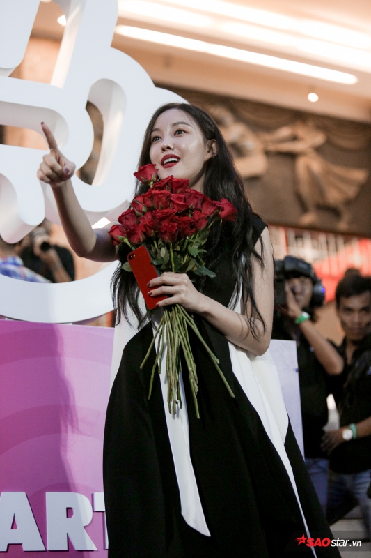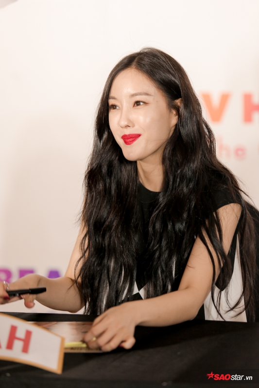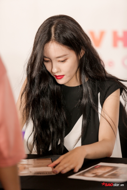 Cô nàng ký tặng nhưng vẫn cười tủm tỉm đáng yêu.