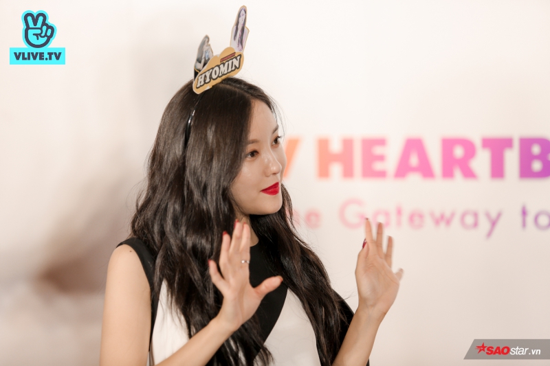 Chiều 28/9, Hyomin đã có buổi gặp gỡ và giao lưu với truyền thông cũng như người hâm mộ tại TP HCM trước khi tham gia chương trình V Heartbeat diễn ra vào tối nay bên cạnh nhóm AOA cùng loạt sao Việt như Ưng Hoàng Phúc, Phạm Quỳnh Anh, Will, Han Sara, Trịnh Thăng Bình, Miu Lê, Phùng Khánh Linh, Da LAB,…