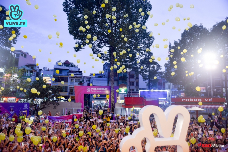 Nhưng sự xuất hiện của Valak chưa phải là màn đặc sắc nhất, để chào đón Hyomin tại V Heartbeat, Queen's Việt đã “ủ mưu” cùng nhau thực hiện một hành động siêu đáng yêu: Đồng loạt thả hàng trăm chiếc bóng bay đồng thời hô vang tên cô nàng khiến Hyomin cực kỳ phấn khích. Có thể nói buổi fansign của nữ ca sĩ chiều nay đong đầy những cảm xúc từ bất ngờ, vui vẻ, cảm động, hơn hết là chứa chan tình cảm.