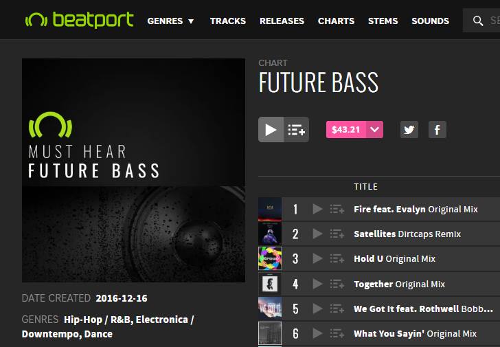 Beatport, trang phát hành nhạc lớn nhất thế giới, cũng chỉ đưa những track Future Bass vào hạng mục Downtempo hoặc rất chung chung là Dance và Electronica.