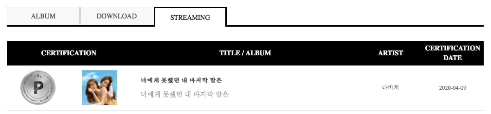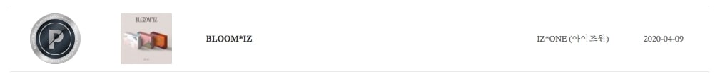 Gaon đã cập nhật nghệ sĩ đạt chứng nhận Bạch kim tuần đầu tiên tháng 4 còn có nhóm IZ*ONE. Album BLOOM*IZ của IZ*ONE cũng gây ấn tượng không kém khi có được chứng nhận Bạch kim tại Gaon ở hạng mục tiêu thụ album. Để đạt được điều này album của IZ*ONE đã bán được hơn 250.000 bản. Và cuối cùng là nhóm nhạc Davichi với sản phẩm Unspoken Words. Ca khúc này đạt chứng nhận Bạch kim ở hạng mục stream nhạc khi vượt qua hơn 100 triệu lượt phát trực tiếp.