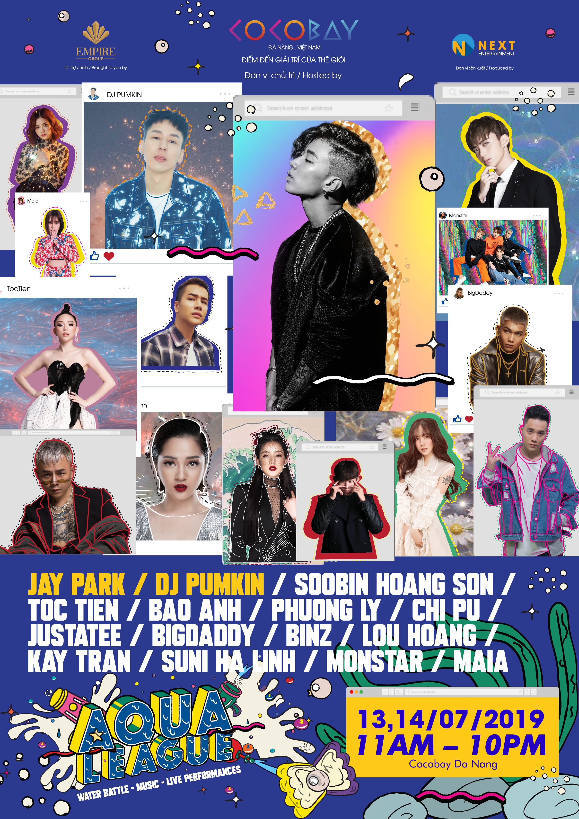 Sự góp mặt của ngôi sao Kpop đình đám Jay Park hay DJ Pumkin cùng hàng loạt các nghệ sĩ Việt đang sở hữu những bản hit khuấy động Vpop như Tóc Tiên, Chi Pu, Bảo Anh, Suni Hạ Linh hay Soobin Hoàng Sơn, Binz; BigDaddy, Kay Trần, JustaTee… sẽ mang đến lễ hội những màn biểu diễn ấn tượng, chắc chắn sẽ đốt cháy bầu không khí cuồng nhiệt tại Aqua League để bạn tha hồ quẩy hết mình.