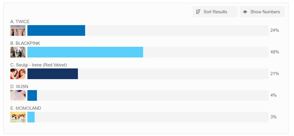 Nhóm BlackPink chiếm 48% phiếu bầu.