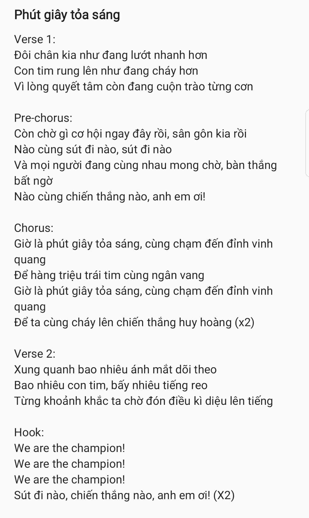Lời bài hát được Khắc Hưng tiết lộ.