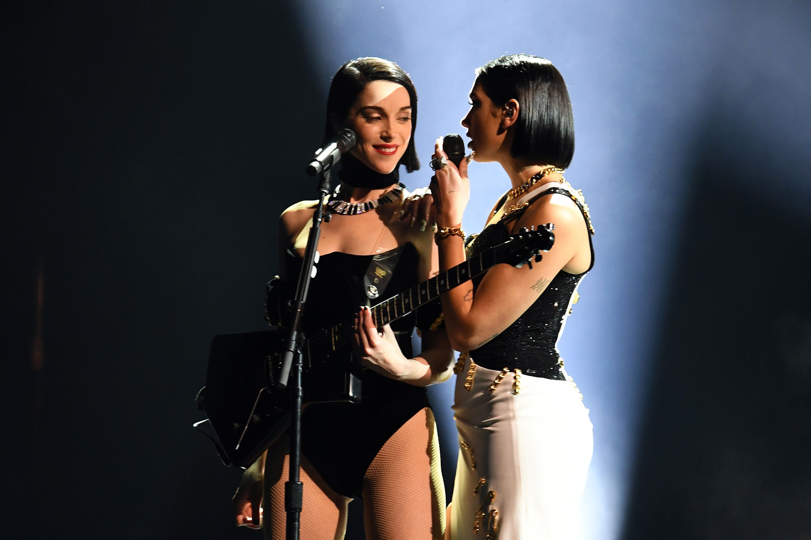 Hai cô nàng St. Vincent và Dua Lipa đã cùng xuất hiện trên sân khấu Grammy 2019 với bản mashup 3 ca khúc đậm chất nữ quyền R-E-S-P-E-C-T, Masseduction và One Kiss. Đây cũng là một trong những màn hòa giọng ấn tượng của Grammy năm nay.