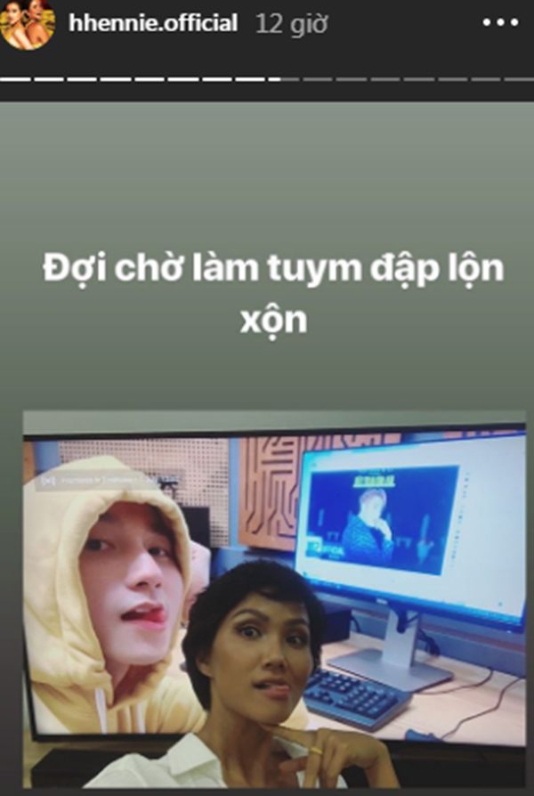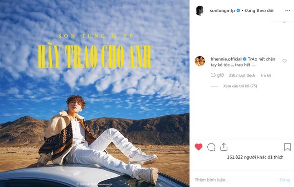 Cô nàng không ít lần còn công khai bày tỏ tình cảm với Sơn Tùng M-TP bằng cách bình luận dưới bài đăng của nam ca sĩ. Theo đó, khi Sơn Tùng M-TP công bố poster dự án Hãy trao cho anh trên Instagram, Hoa hậu H'Hen Niê ngay lập tức có dòng bình luận như hóa fan girl: “Trao hết chân tay kẻ tóc… trao hết…”. Dòng bình luận này đã nhận được hàng nghìn lượt thích của người hâm mộ dành cho sự dễ thương của nàng Hoa hậu.
