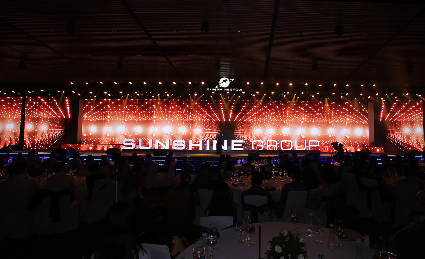 Với sân khấu panorama hoành tráng, lộng lẫy cùng loạt màn hình LED siêu lớn, sự kiện ra mắt của Sunshine Group đã đem đến một chương trình đẳng cấp, những vũ khúc ánh sáng hiện đại trong không gian công nghệ và kiến trúc đột phá.