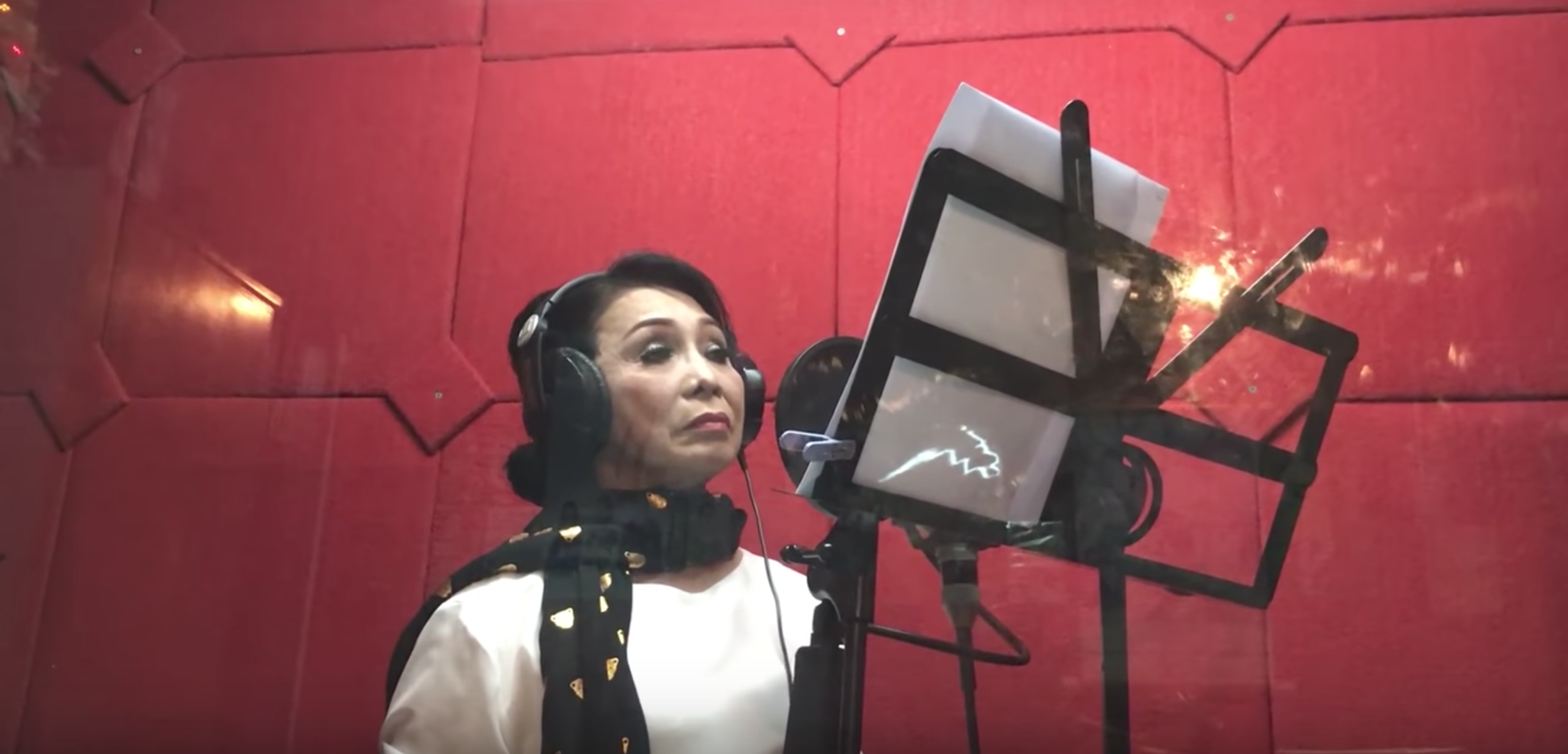 NSND - Tiến sĩ Bạch Tuyết trong phòng thu âm Em gái mưa.