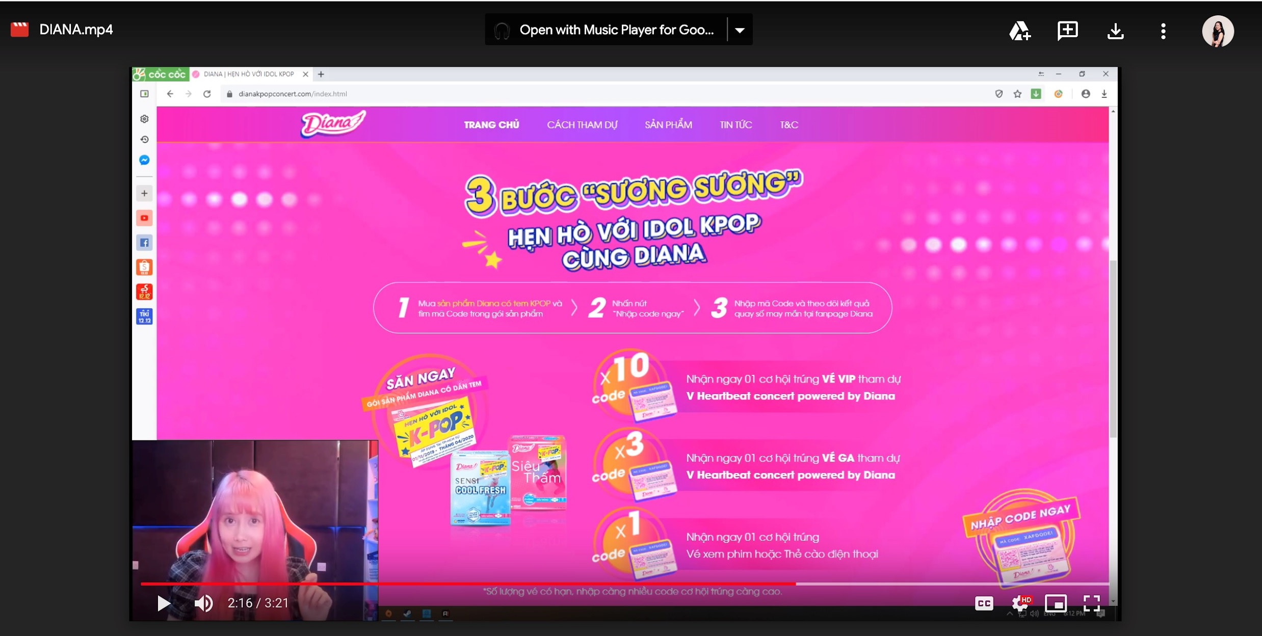 Không chỉ các hot girl mới bị Diana “bỏ bùa”. Mà các streamer đình đám cũng không nằm ngoài cơn sốt Diana KPOP Concert. Cô nàng Mai Quỳnh Anh còn cẩn thận làm một video hướng dẫn chi tiết 3 bước “sương sương” tham gia quay số may mắn nhận vé Diana KPOP Concert.